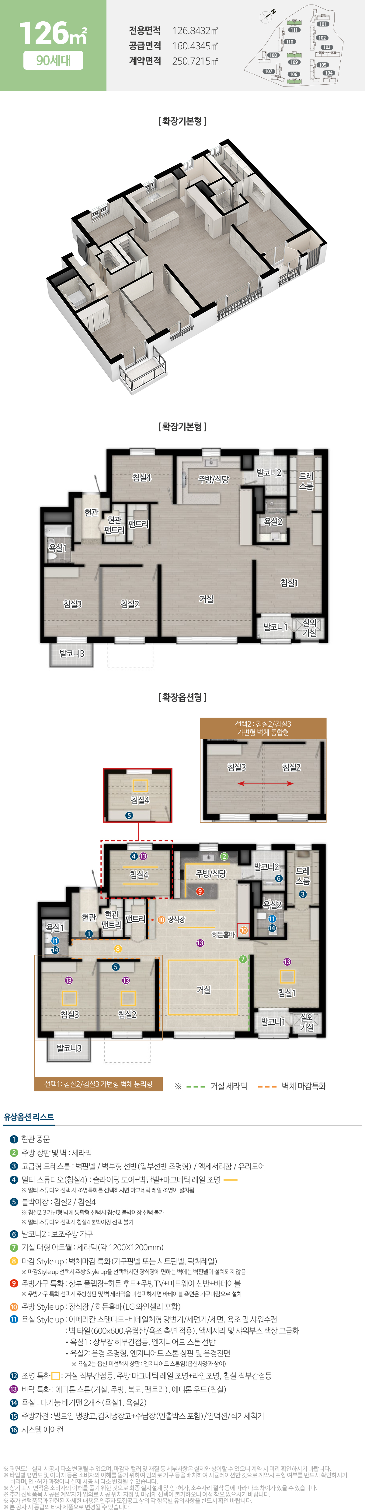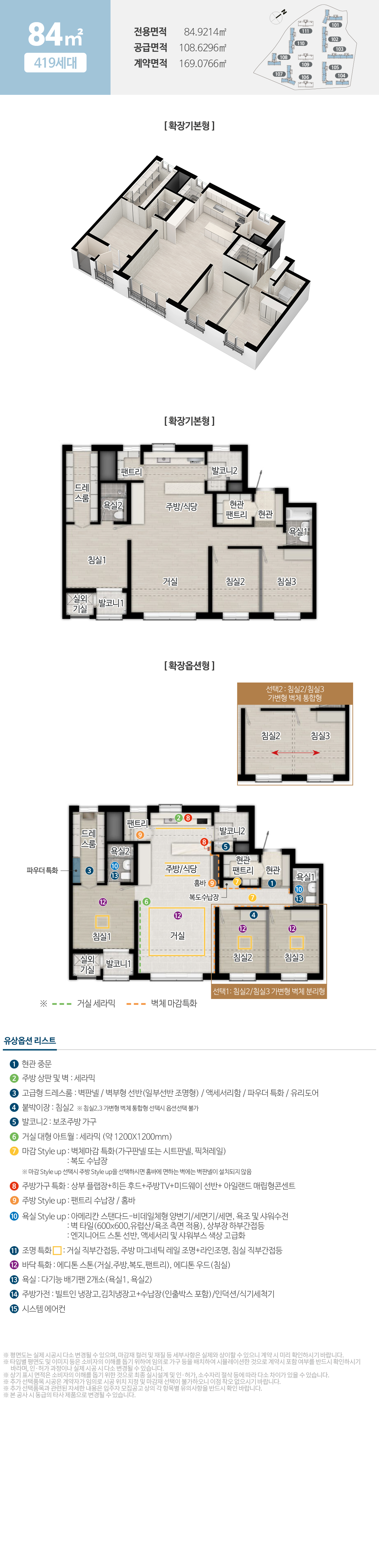 ※ 각종 광고 및 홍보물, 주택홍보관 등에 적용된 마감재 수준 이상으로의 변경 요구는 불가하므로 마감재 수준을 자세히 확인한 후 신청 및 계약체결하시기 바랍니다.